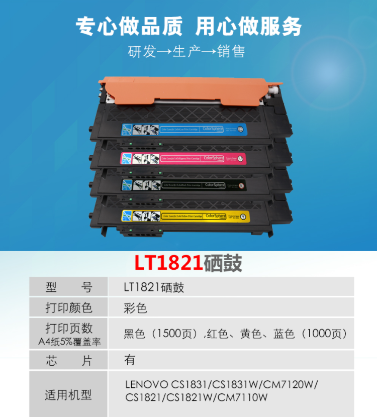 骅威 LT1821BK黑色粉盒 适用联想CS1831 1831W硒鼓CM7120W墨盒CS1821墨粉7110W 打印机硒鼓 黑色(1500页)/红/黄/蓝(1000页)
