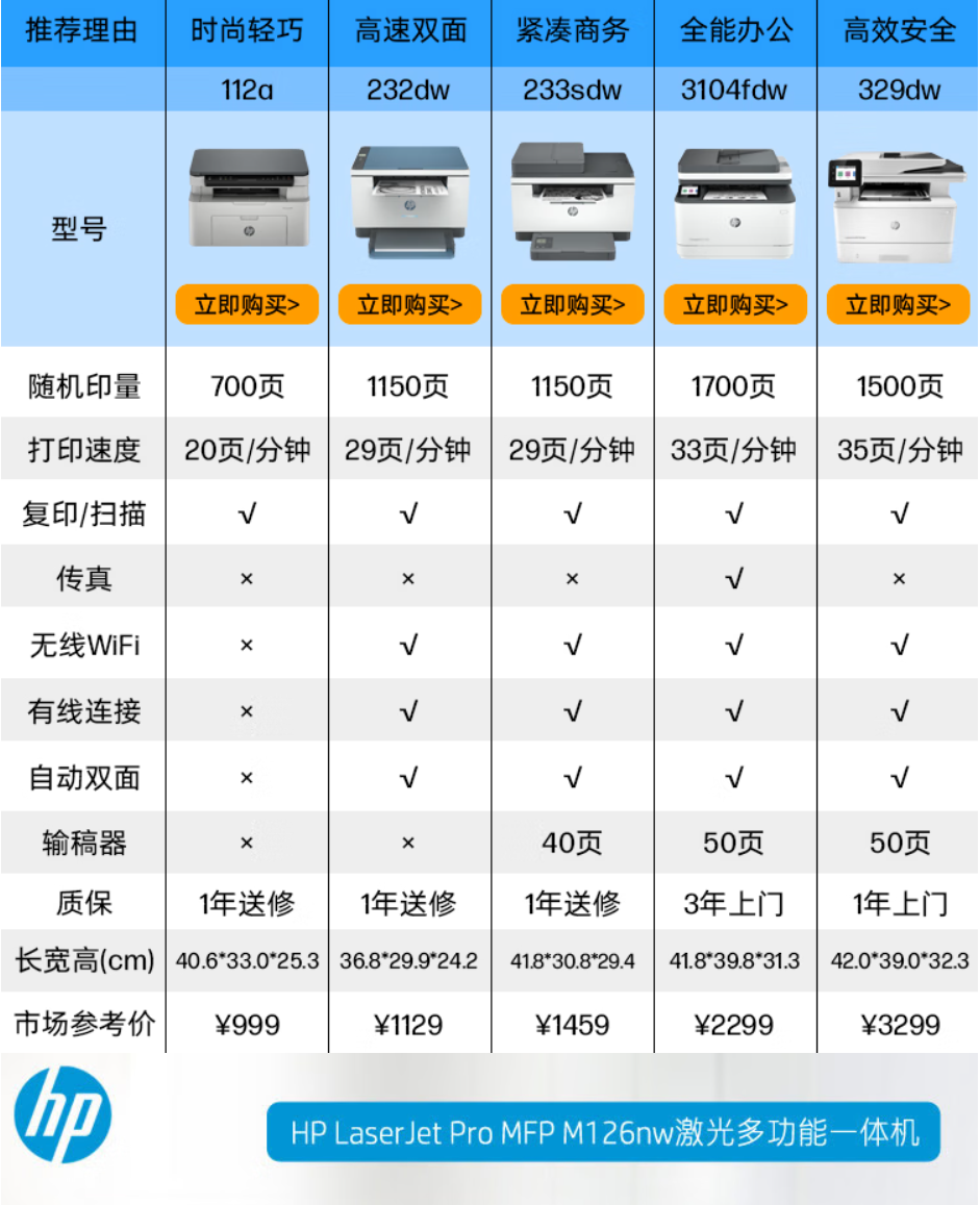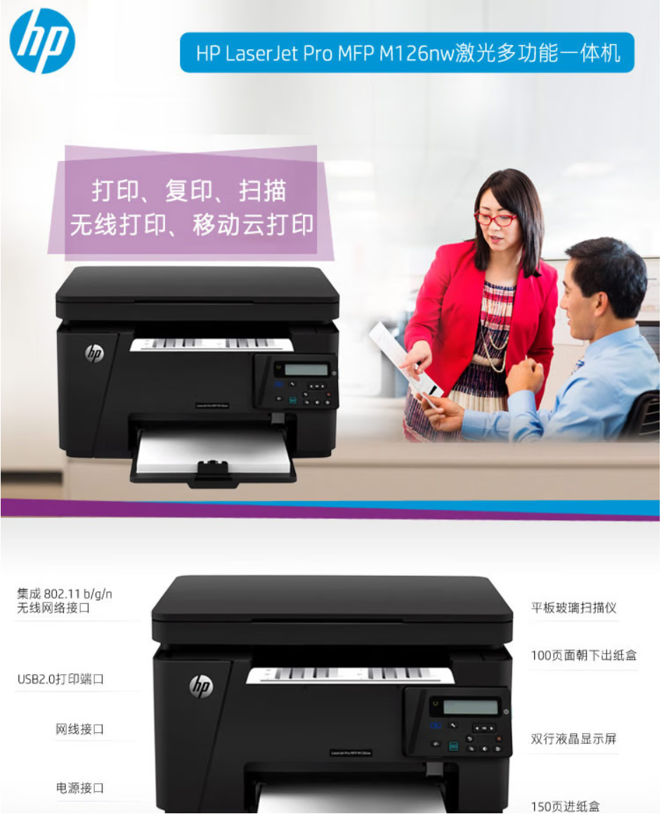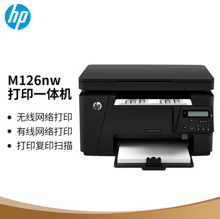 惠普(HP) M126nw黑白激光无线多功能家用打印机(打印 复印 扫描)