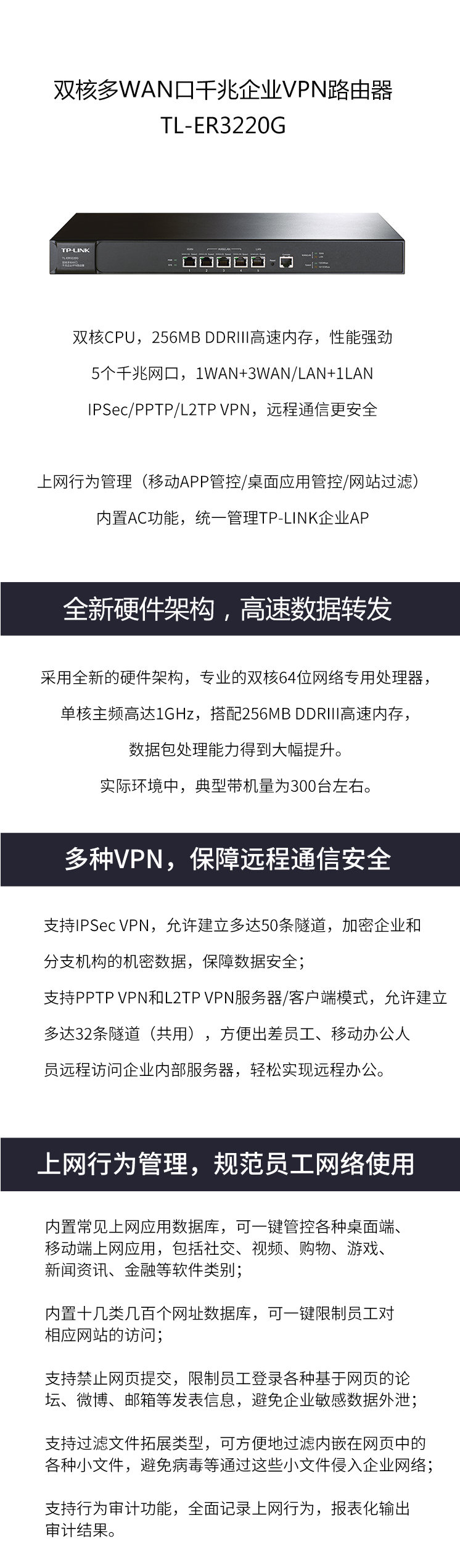 • 商品名称:普联(TP-LINK) TL-ER3220G 路由器 双核多WAN口千兆企业VPN