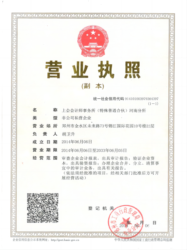 上会会计师事务所(特殊普通合伙)河南分所