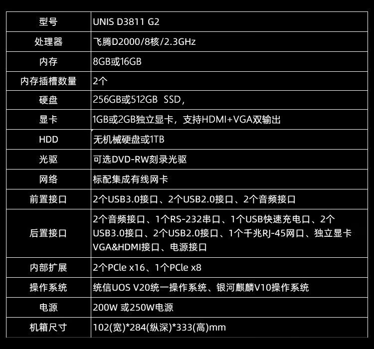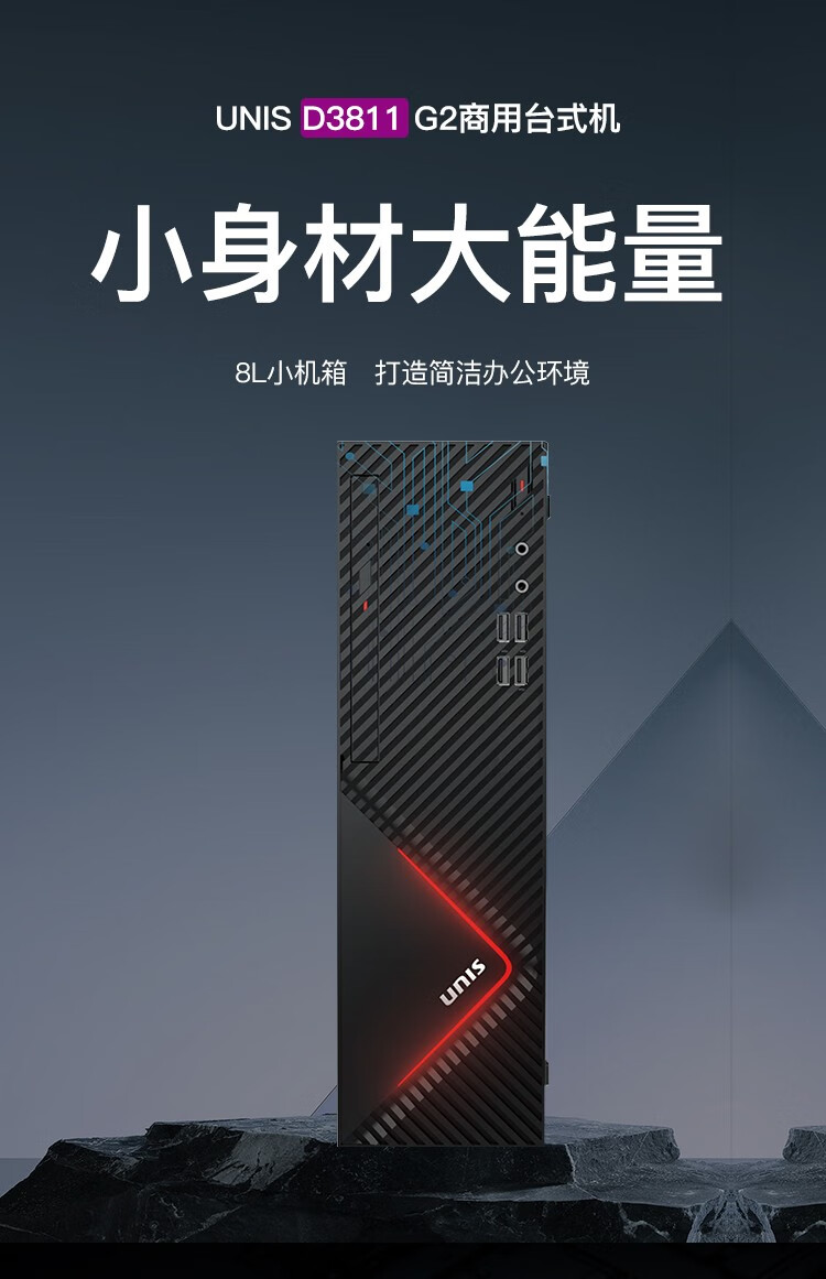 紫光(UNIS) D3811 G2商用办公信创电脑台式机 统信UOS/银河麒麟 飞腾D2000 23.8英寸显示器+主机 8G/256SSD/1G独显