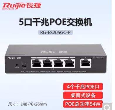锐捷(RUIJIE) RG-ES205GC-P 5口POE交换机 弱电箱办公交换监控AP网络分流器口千兆