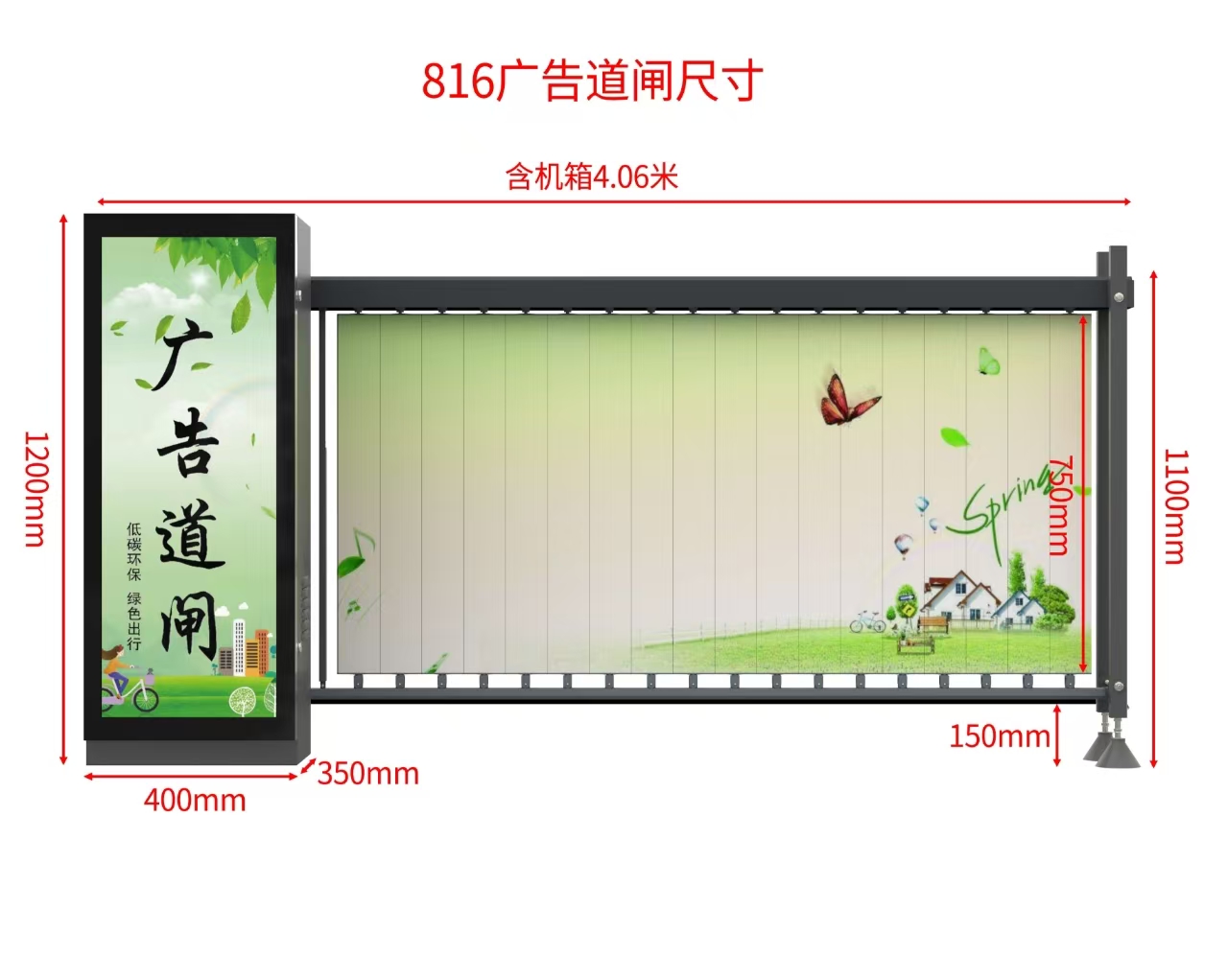 广告道闸,包含机箱,道闸杆及配套系统,通道管理实现升降功能