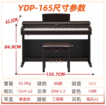 雅马哈(YAMAHA) YDP165立式初学考级儿童成人家用演奏钢琴黑色+原装琴凳+官方标配