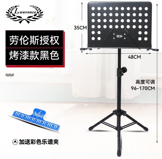 劳伦斯 LLS-Y201谱架吉他小提琴古筝乐谱架家用便携式歌谱台可升降曲谱琴架 黑色劳伦斯大谱台+谱夹