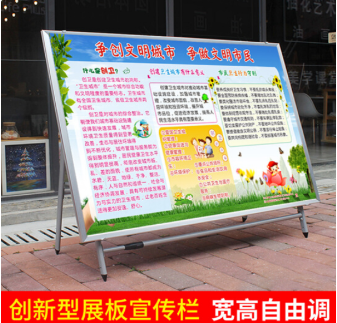 标识/展示 宣传栏展板架立式落地式kt板海报活动宣传厂外公告栏广告牌大屏展示架 银色铝框2.4*1.2m 含钢架