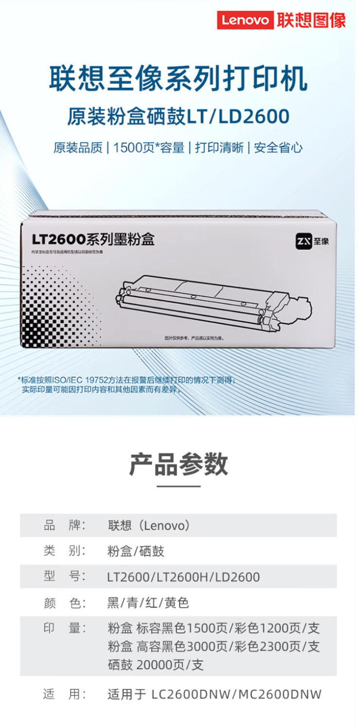 • 商品名称:联想(Lenovo) LT2600粉盒适用LC2600DNW/MC2600DNW激光打印机 黄色