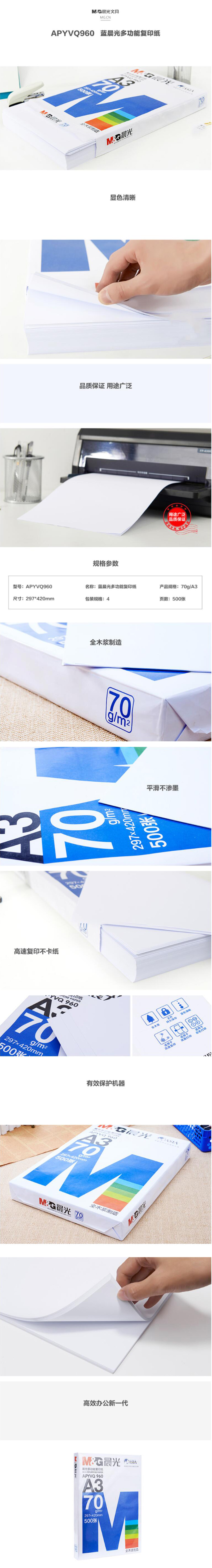 晨光(MG) APYVR960 蓝晨光 A3多功能复印纸 4包装 2000张