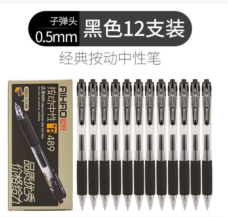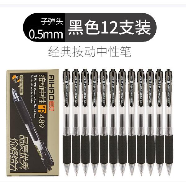 爱好(AIHAO) 按动中性笔签字笔办公用品水笔B489按挚式中性笔 黑色一盒