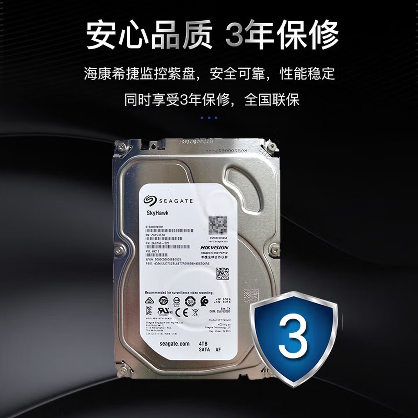 海康威视(HIKVISION) 监控级硬盘 3.5寸电脑硬盘 录像机专用SATA串口硬盘 全新原装正品 2TB 希捷硬盘
