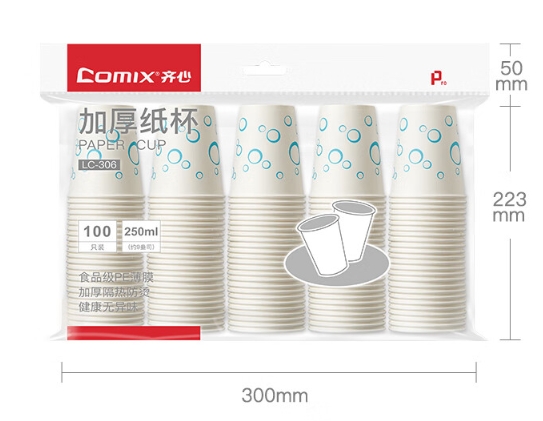 齐心(COMIX) LC-306 一次性水杯/纸杯 250ml 100只装