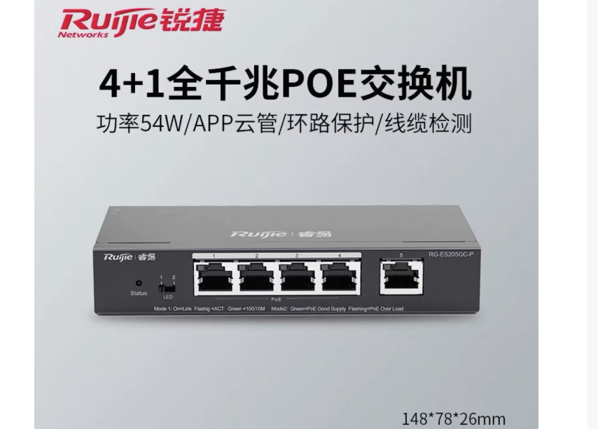锐捷(RUIJIE) RG-ES205GC-P交换机 4+1口千兆POE交换机 5口管理poe交换机