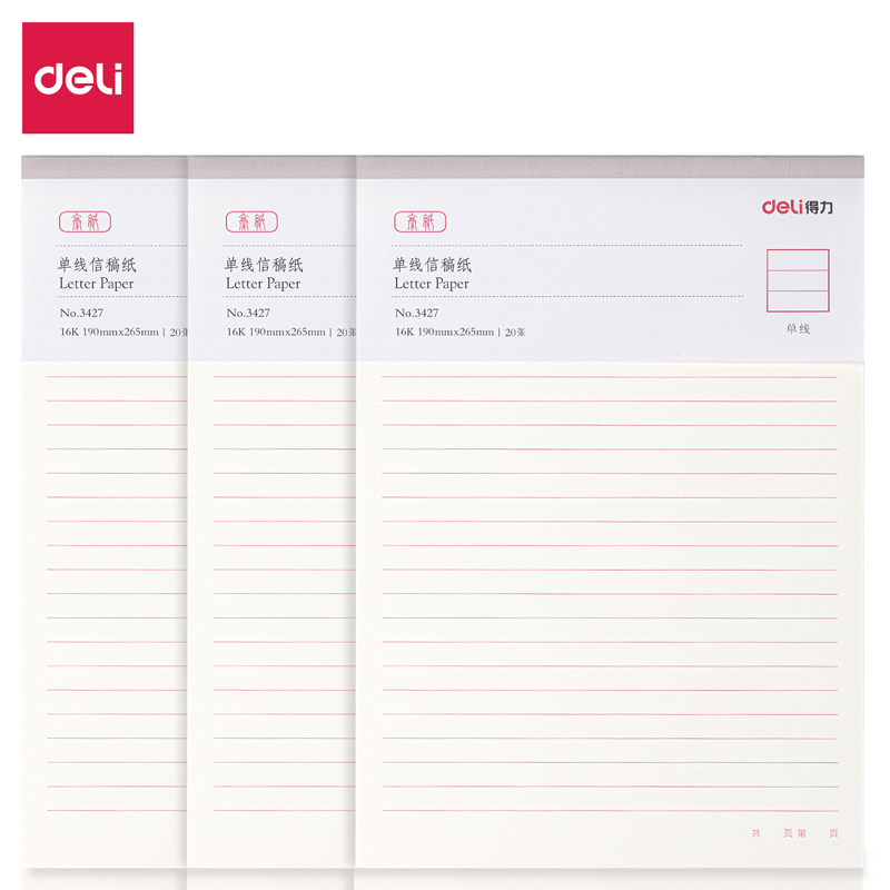 得力(deli) 3427单线信稿纸-70g-266*190mm(3本装)