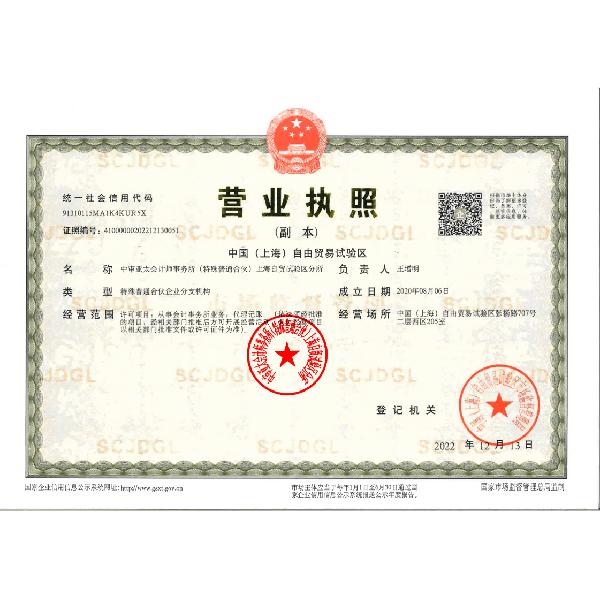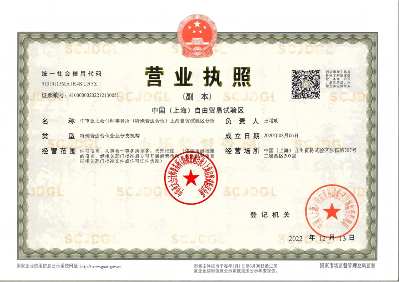 中审亚太会计师事务所(特殊普通合伙)上海自贸试验区分所