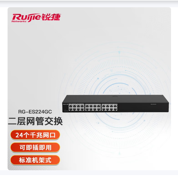 锐捷(RUIJIE) RG-ES224GC 24口全千兆网管交换机 二层网管交换 标准机架式