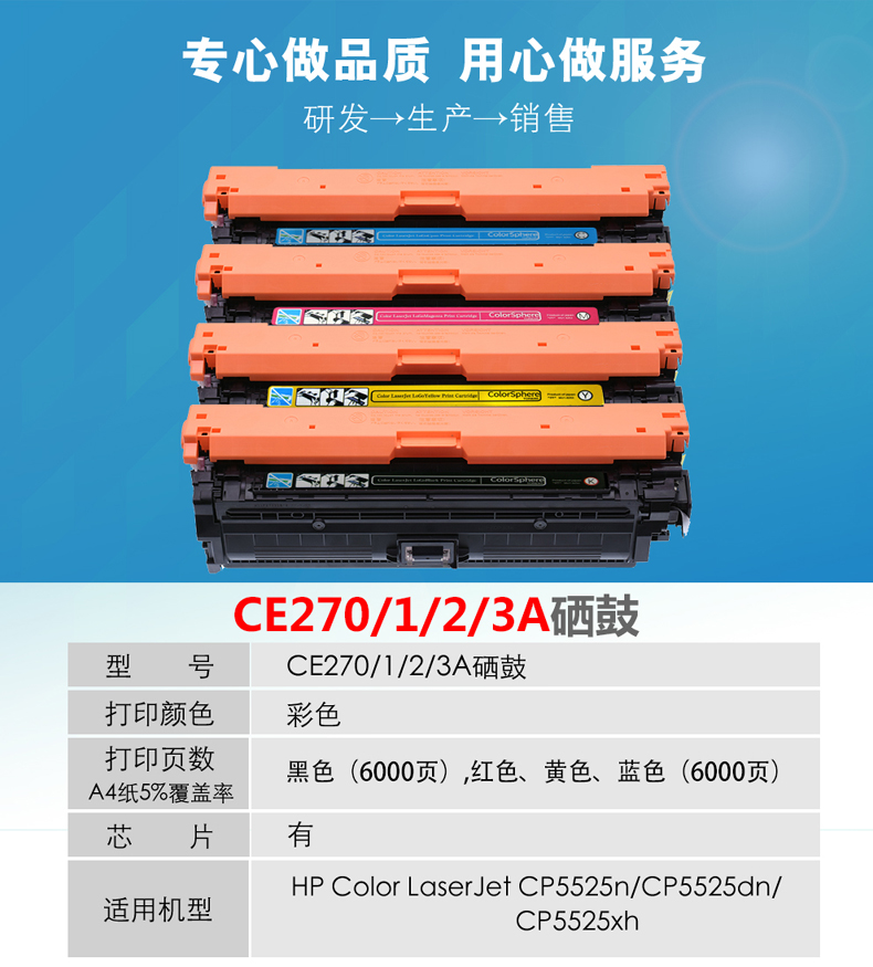 骅威 CE272A黄色硒鼓 适用惠普HP CP5225 CP5225n CP5225dn 打印机硒鼓