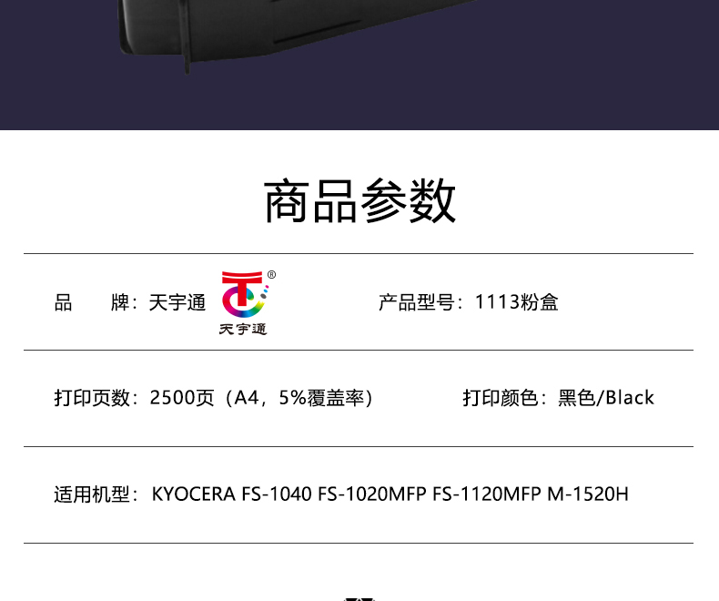 天宇通 1113墨粉盒适用FS-1040/1020/1120MFP/1520H打印机
