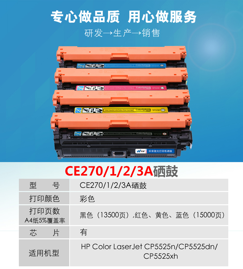 骅威 CE272A 黄色硒鼓 适用惠普HP CP5225 CP5225n CP5225dn 打印机硒鼓