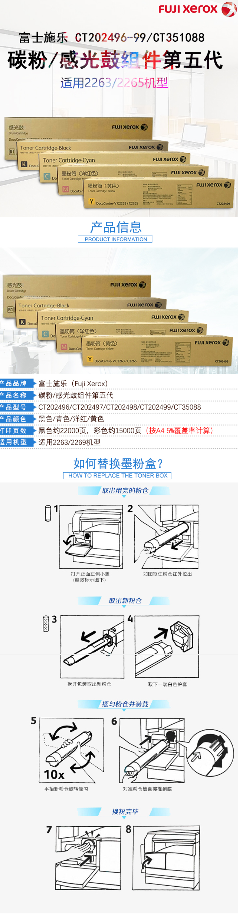富士施乐(Fuji Xerox) CT202497青粉碳粉 适用于五代C2263/C2265